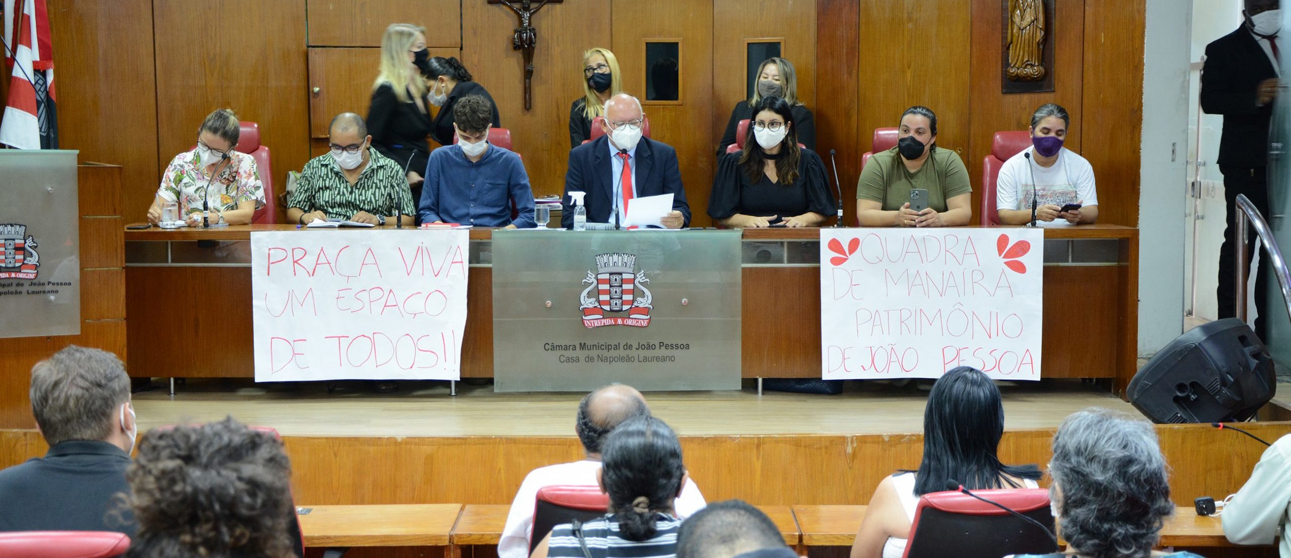 Também compuseram a mesa Flávio Tavares, representante do Instituto de Arquitetos do Brasil, a representante do movimento de luta pela praça de Manaíra, Larissa Targino, o professor da UFPB, Alexandre Sabino, além da representante do Movimento Moradias, Lúcia Andréia (Lúcia da Moradia) e o presidente do Movimento Juventude do PT, Natanael Nunes.