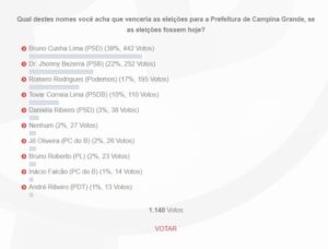 [ELEIÇÕES 2024] Confira o resultado da segunda enquete do Bastidores da Política PB sobre a disputa pela prefeitura de CG