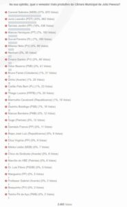 Durante os dias 29 de dezembro e 07 de janeiro de 2024, o site Bastidores da Política PB questionou seus leitores sobre: ‘Na sua opinião, qual o vereador mais produtivo da Câmara Municipal de João Pessoa?’ Iremos elencar aqui os 5 mais bem votados e também os 5 menos votados, que na opinião de nosso público são os mais e menos produtivos na casa de Napoleão Laureano.