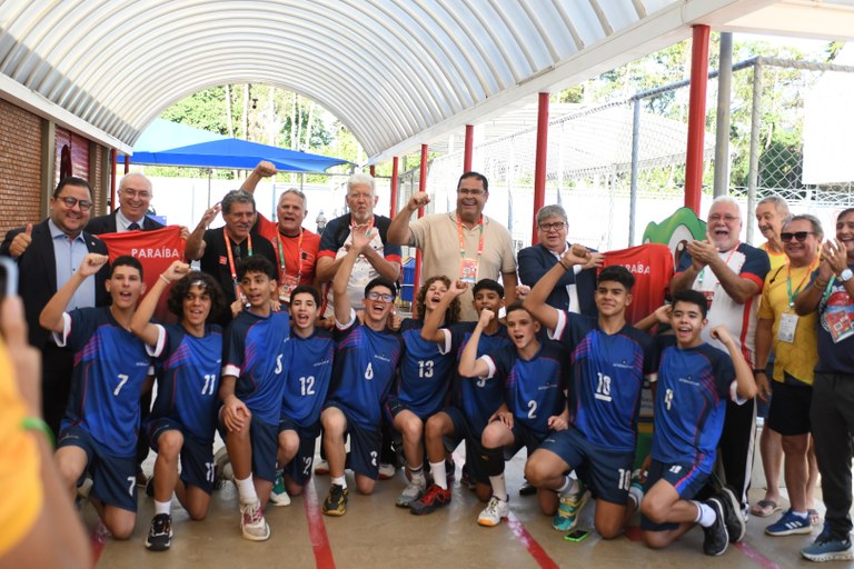 O governador João Azevêdo prestigiou, nesta quarta-feira (8), em Brasília, a entrega de medalhas de ouro a atletas paraibanos do voleibol masculino que venceram a equipe do Rio de Janeiro. Com a vitória de hoje, a Paraíba já contabiliza 39 medalhas nos Jogos Escolares Brasileiros (JEBs) deste ano.